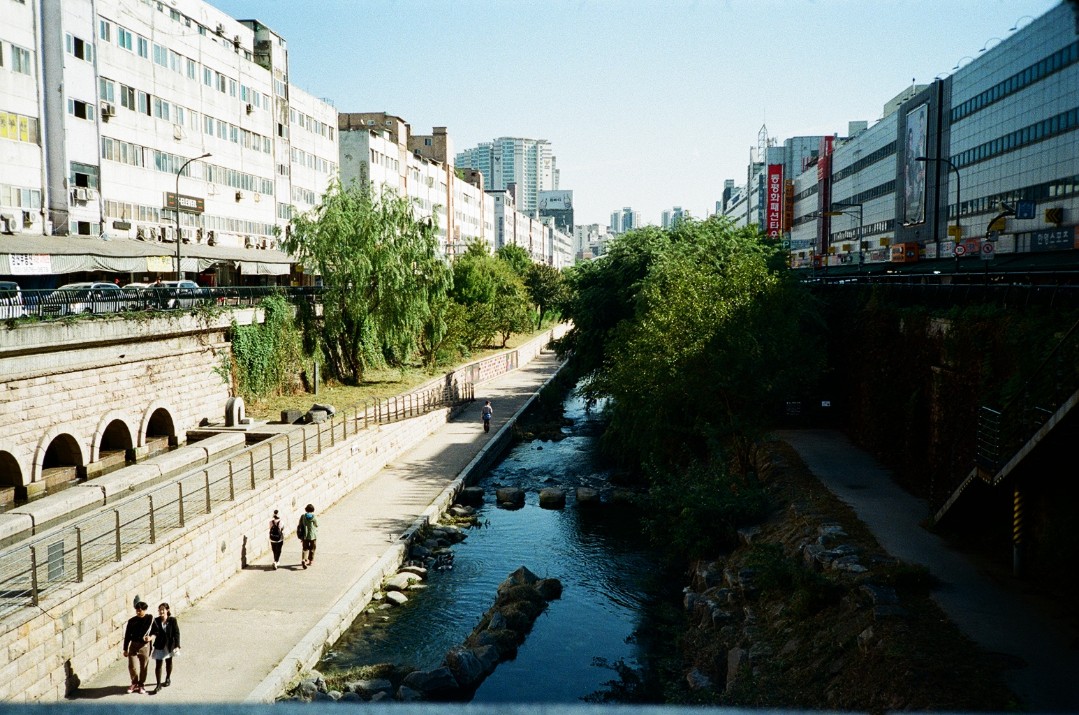 흥인지문공원 쪽으로 걸어가다 보니 쭉 이어진 청계천이 보였어요.